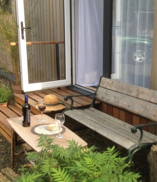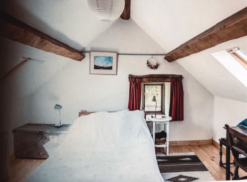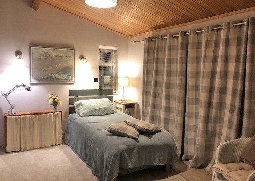 Large bathroom, ground floor master bedroom has a comfortable 3' single bed and optional additional quality fold out single guest bed, ensuite shower and toilet, and a patio door which provides own entrance. Second downstairs bathroom with full bath and shower and toilet. First floor has a smaller bedroom with 4ft double bed and skylights, mezzanine is an office and music making space with potential single futon for additional guest.