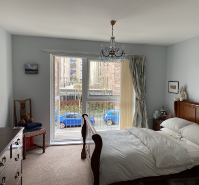 Master double bedroom with fitted wardrobes, en-suite & balcony looking over Arthur's Seat.