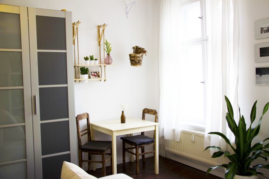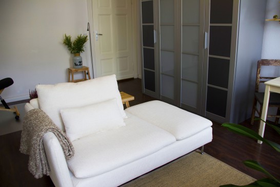 -fully furnished (wireless internet, washing machine, desk, TV+DVD, laser printer, landline with flatrate calls to Germany, UK, Europe, Canada, and US)