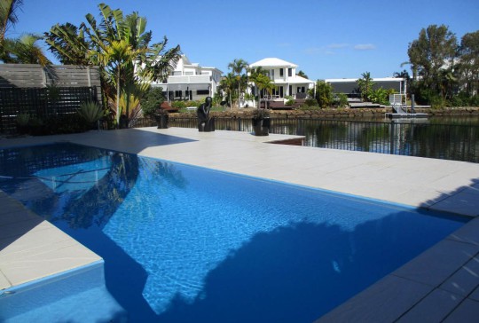 Contemporary waterfront home with pool and views, near beaches, golf, Noosa and Brisbane