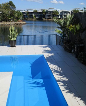Our modern home with swimming pool overlooks Twin Waters lagoon and is close to white sand beaches, several world-class golf courses, local shopping, restaurants and an international resort-style hotel. The house is very light with an open-plan design incorporating a granite/stainless steel kitchen, living area, indoor and outdoor dining areas plus a terrace overlooking the pool and lagoon. There are 3 bedrooms plus a separate fully equipped office, 2 bathrooms with spa bath, a double garage and air-conditioning. This is our main home, used for home exchanging but never rented. However, we do have a second home, so non-simultaneous swaps are no problem for us and you can stay here whenever you prefer.