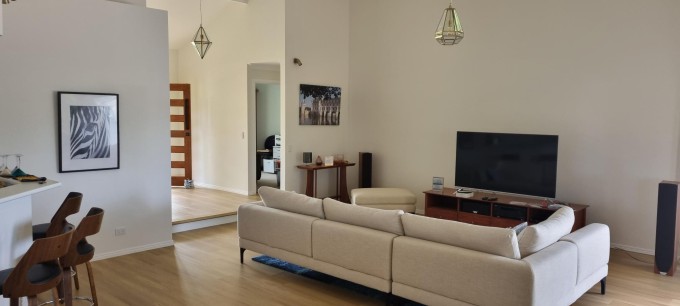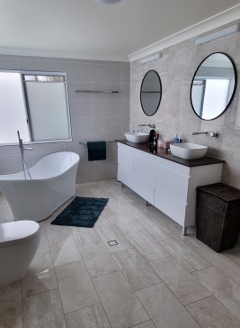 Open plan design with lounge, family room and kitchen in the middle of the house. One side of house has a large bedroom (opening out to pool area) and a very large bathroom The other side of the house has 2 bedrooms, bathroom, seperate laundry and access to garage. All on one level.