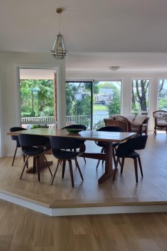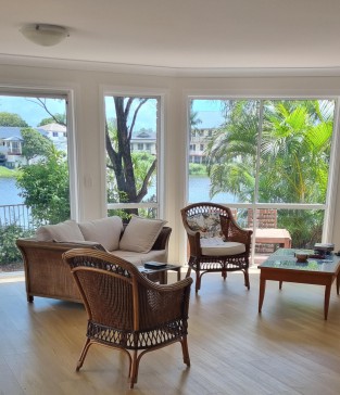 Large pool fully glass fenced overlooking beautiful waterway and across to beautiful homes and hills. Kayaks at waters edge. Lovely trees and plenty of native birds visiting.