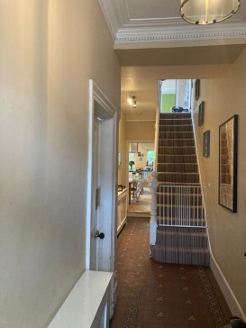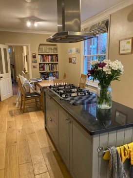 Our house was built around 1910 and retains many original period features, including a beautiful mosaic front hallway and stained glass front door. On the ground floor we have a large double living room with sofas, plenty of books and a play area with a piano you are free to use. There are french doors that open onto the garde We have a separate eat-it kitchen (seats 10 r), which is very well equipped and also leads onto the garden. The garden has a large patio area that leads onto our lawn with a children`s play house and small climbing frame (which can be tucked away out of sight if you prefer) and full size table tennis table! We have a BBQ and outdoor table and chairs.