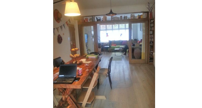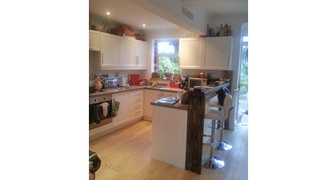 The kitchen-diner adjoins the living room on one side via large sliding glass doors and opens into the garden on the opposite side. Living room has a big L shaped sofa, which can accommodate two more people comfortably. Teenagers best spot!
