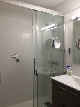 We are at ground floor level, but 2 floors down from the car park, and set on a hill overlooking the whole coastline. There are 2 pools within the complex, which comprises 4 low-rise apartment blocks.