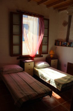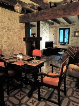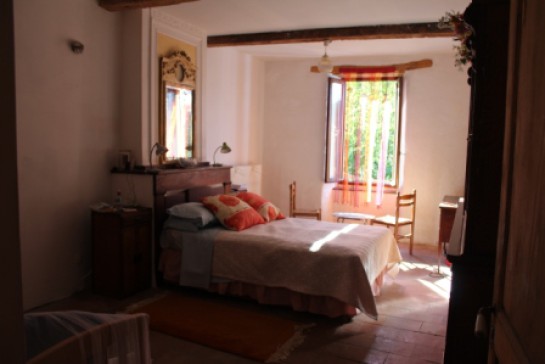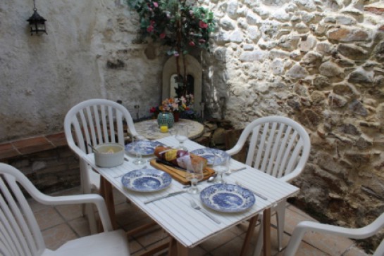 This medieval town house has been renovated to a comfortable standard and has all modern conveniences. Inside, there are original oak beams and tiled floors, with stone walls and plenty of character. The front is on the small street leading to the village square, although traffic is one way and has restrictions, making it a quiet location. Outside at the back is a small courtyard with high walls and tiled floor, containing dining furniture and provision for outdoor lighting. The house has recently been rewired and central heating installed, making it comfortable whatever the season. The walls are very thick stone, keeping the inside cool in summer and warm in winter. The kitchen has all the usual conveniences - gas hob, electric oven, fridge/freezer, all cutlery/crockery and cooking equipment (no dishwasher). There is a downstairs toilet on this floor. The living room has a dining table (for 6), settee, electric stove, tv (no live tv but plenty of DVDs) video player and music centre with CDs.