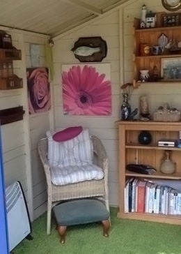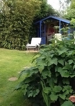 The rear garden is private and secluded. It is on 2 levels and there are seating areas, tables and chairs, firepit, gazebo, Weber charcoal barbecue, summerhouse, studio and garage with large freezer and tumble drier.