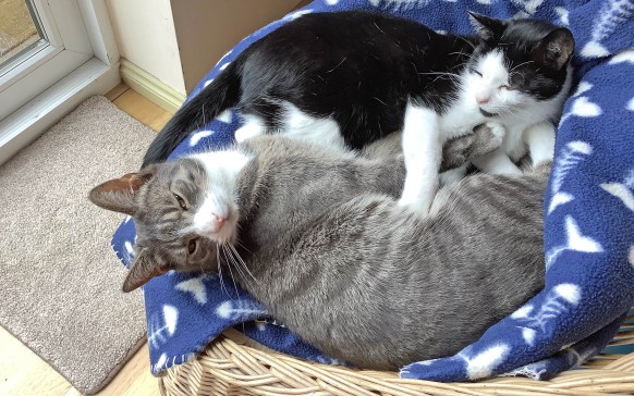 We have four cats ; friendly, playful boys (Beezy and Dexy) and two newer rescue girls (Florrie and Tippi). They have beds in the utility room and only access to some if the ground floor of the house when people are at home. They have a cat flap to the garden.