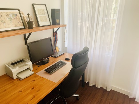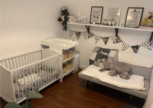 We have the main bedroom and a baby room with a really comfy pull-out sofa