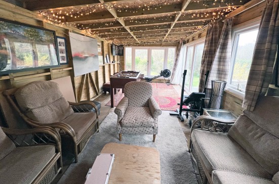 We have a large summer house with gym equipment, table football, darts and a chill out space.