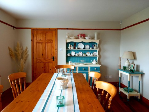 The home is located on a quiet road off the N15 road between Bundoran and Sligo near Tullaghan village. It is a large country house with all ammenities. Downstairs there is a kitchen with separate dining room, living room, bedroom and bathroom. Upstairs there are three large bedrooms one with ensuite and a bathroom. There is a detached garage and large gardens outside. There are views of Benbulben Mountains, Mullaghmore village, Classiebawn Castle and Donegal Bay.