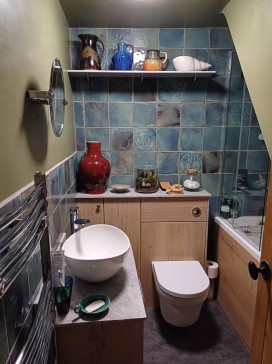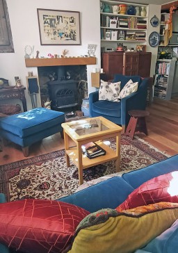 The open-plan living room/kitchen features a woodburning stove which can be used to supplement the gas central heating. There is a good internet/WiFi service, however I do not have a TV. I have recently had the kitchen completely refurbished. It is well-equipped with an induction hob over an electric oven; a `boiling` tap; microwave/multi-cooker/slow-cooker also available. A large walk-in cupboard houses a capacious fridge-freezer and a washing machine (please note: there is no drier but a clothesline in the garden and an airer with dehumidifier for drying indoors).