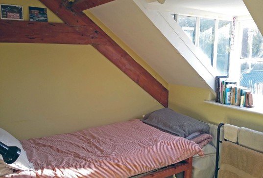 A second flight leads up to another sunny bedroom with a single bed, and a smaller boxroom.