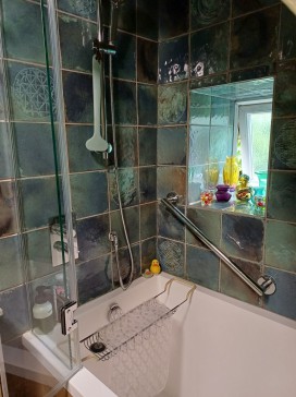 Stairs lead up to the first floor with a bright double bedroom and the bathroom next door, which has recently been remodelled with the addition of a 'soaking bath'. There is a step for the less athletic to help get into the bath (I include myself in this!), but anyone with hip/mobility issues may struggle.