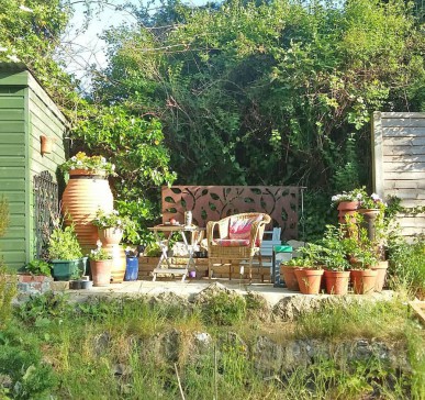 All the gardens are to the side and in typical Stroud fashion, there are no fences between them - we just treat each other`s space with respect! My garden is in the middle, with a little sun-trap patio above a raised vegetable patch at the top and a `secret` garden at the bottom, created by the planting of screening bushes, providing a great deal of privacy when sitting outside. Chairs and tables are stored in the shed at the top of the garden. Don`t be surprised if you come across deer and badgers in the gardens!