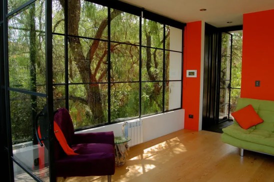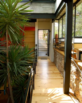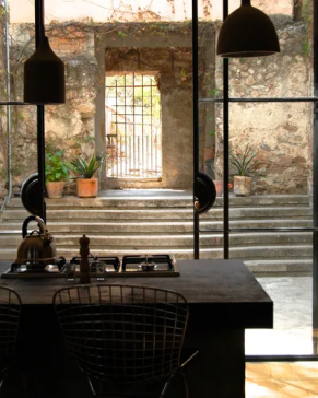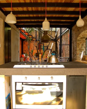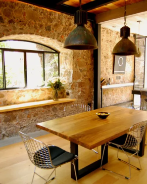 contemporary loft-style home that blends the old with the new. Built on the site of a former Hacienda the architect was able to salvage 200-year-old stonewalls and incorporate them into a stunning design.