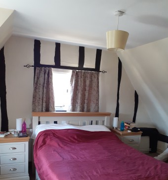 We have a spacious kitchen, recently refitted, with room to have breakfast and a separate utility room with a loo. There is a dining room next door, with a piano (slightly out of tune) and stairs to the bedrooms and bathroom. The bathroom has a large walk-in shower, but no bath. There are 3 bedrooms, two doubles and one that can be a single, twin or double.