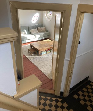 Our end of terrace home was built in 1934 and boasts lots of characters. Our big wrap around yard is a haven of flowers in the summer. We have a sweet cat that hates staying home alone and would be very grateful for the company. We have 2 big bedrooms (one set up as a nursery) and a huge attic with a double bed. The attic is not insulated so it does get hot/cold depending on the weather. It’s an ideal family place or a nice and spacious home for a couple.