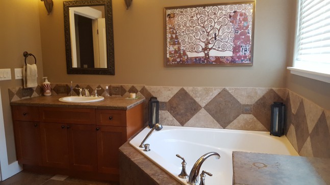 We also have exercise equipment including a workout tower, workout bench, rebounder, and an assortment of weights. We have a two-person far infrared sauna as well as a garden-style jacuzzi tub for a spa-like experience right here in our home.