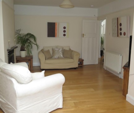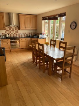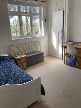A 4/5 bed property (currently set up as 4 bedroom and office). We have luxury double blow up bed to make a 5th bedroom if needed. Lovely garden, west facing. 10ft trampoline. River access (River Ember) with use of kayaks. Beautiful scenery just 5 minutes round the bend of the river. Has own parking for 2/3 cars. 1 family bathroom, 1 en-suite shower room, off master bedroom. Guest WC downstairs. En suite WC off bedroom 3. Both single room beds have trundle beds. Handy utility room. Sleeps 8/10 (10 with luxury blow up bed).