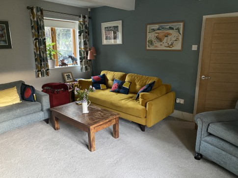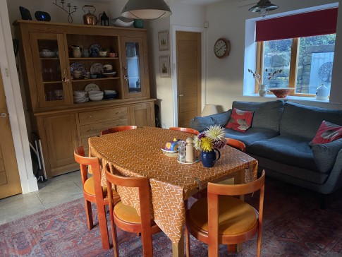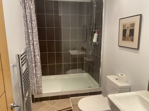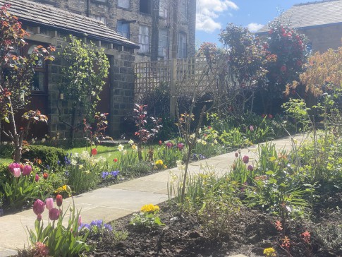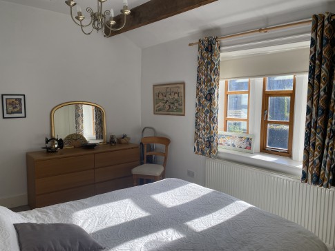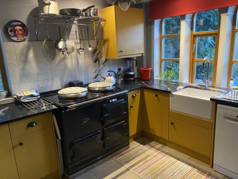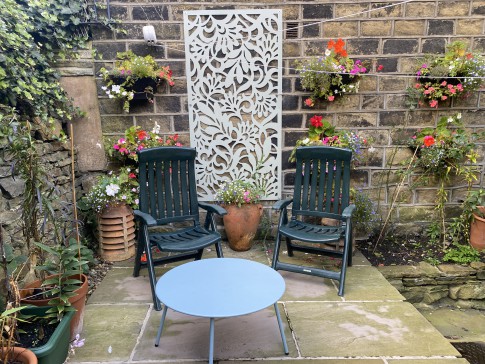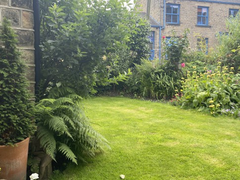 A historic house, built in approximately 1790, in the centre of the bustling village of Slaithwaite. It’s a beautiful cosy home, with a well equipped kitchen and AGA for cooking, a downstairs toilet, dining room and sitting room, with a sofa that turns into a comfortable double bed if needed. Upstairs there are two large bedrooms, and two bathrooms, both with showers, and one with a bath as well. There is also a dressing room attached to the master bedroom with two children’s beds in it, if needed. Outside in front of the house is a lovely well stocked south facing garden, a small lawn, two sheds and an artist’s studio. There is also a table and four chairs in the garden. There is a drive which accommodates two cars. At the back of the house is another sitting area, and steps up to the canal.