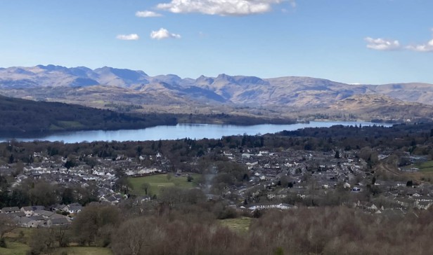 We have lovely views towards the north of the lake and the Langdale Pikes from the living room and balcony.
