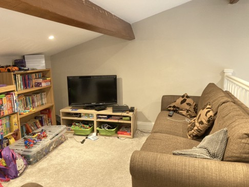We have renovated our home to make a light, bright, open plan home with a garden big enough to kick a ball in and a trampoline. Kids mezzanine area with sofas, toys, tv and PS4.