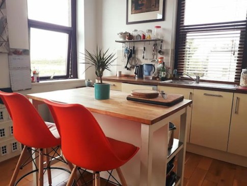This 72 sq m apartment is on the first floor – it’s light and airy, and has a huge central open plan living space with three tall windows looking out onto the Walthamstow Marshes; we have wooden floors throughout. There`s a comfy sofa and two armchairs, to kick back on at the end of the day. Large fully equipped kitchen - at one end of the sitting room - with dining table and breakfast bar.