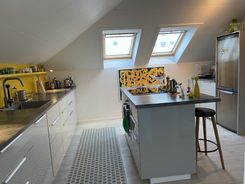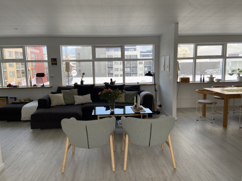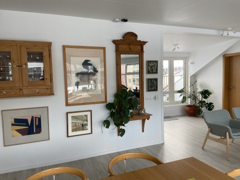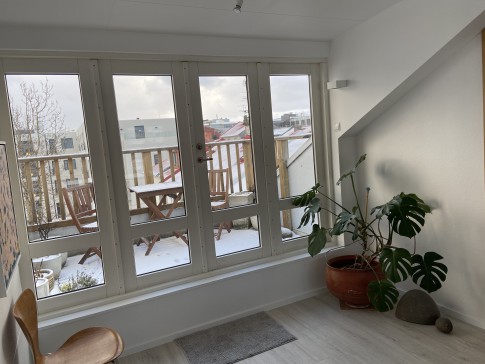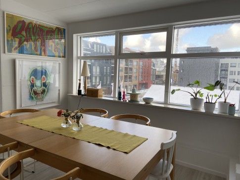 My home is a top floor in the center of Reykjavik. It is a very bright 75m2 apartment on the 3rd floor. There is no elevator. You will have view over new and old houses in Reykjavik and from the kithen window you see the mountains. The apartment is very cosy, filled with art pieces and lot of art books. The balcony turns to SA and is a nice place to enjoy sunny days. The apartment has a spacious living and diningroom. In the summer the evening sun lits the livingroom almost until midnight. There is one bathroom with shower. The kitchen is brand new and has everything you need for cooking.