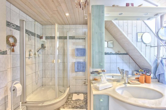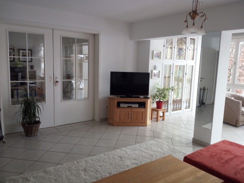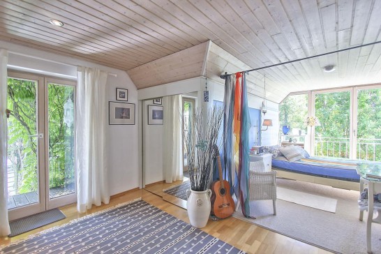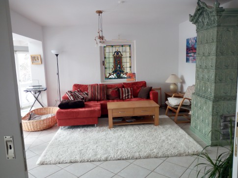 We live in a lovely, bright and spacious three-bedroom house in a quiet corner of Feldafing. The house has four floors (basement, ground floor, upstairs, and attic). Upstairs there is a spacious double bedroom and a second bedroom with two single beds. There is also a bathroom with a shower. On the ground floor there is a large open plan kitchen and our living room which is connected to a tea room / winter garden. There is also a study with a sofa bed which sleeps 2. In the basement there is another double bedroom and a further bathroom with bath/shower facilities. The attic has a sofa and a bean bag and is currently used as a reading room / snug room.