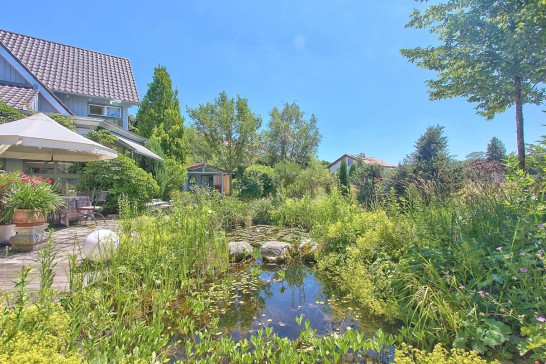Outside there is a sunny, south-facing garden with a pond, a wooden garden cabin with table and seats which is a great place to eat or enjoy a drink in the summer. There is also a large garage where our bikes and barbecue are stored.