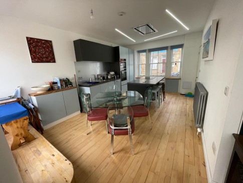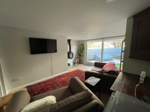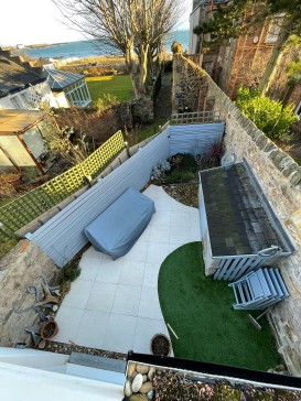 The house has a large dining kitchen, with a snug area and doors onto the roof top balcony, with stunning views over Elie beach and over to Elie Ness lighthouse and the Bass Rock. There are two double bedrooms (one with a king size bed and one with a double bed) and a small single (childs) bedroom. Downstairs there is another living area, with a woodburner and sofas to sit and relax or watch TV. Off this living area is the small enclosed sheltered garden which is a real suntrap. The house also has two shower rooms. There is free on street parking available.