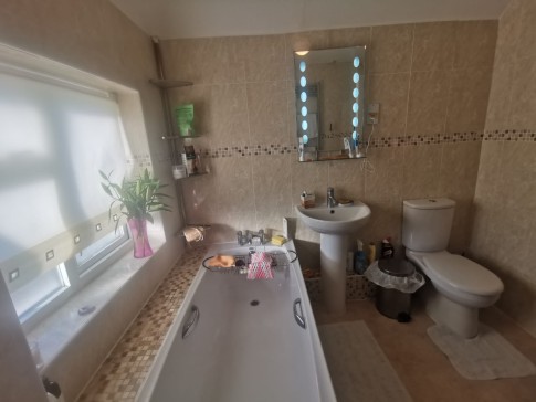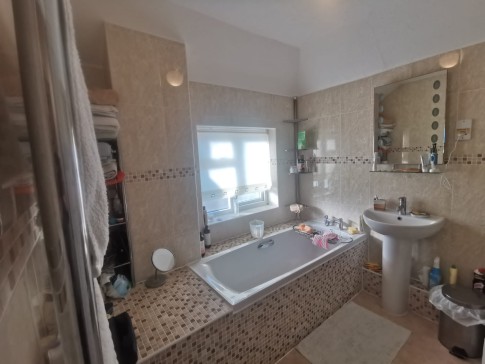 On the first floor is the large master bedroom with ensuite shower, family bathroom with WC, and bath; further bedroom with a single bed. Every bedroom has fitted wardrobes.