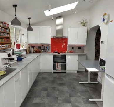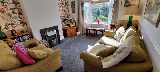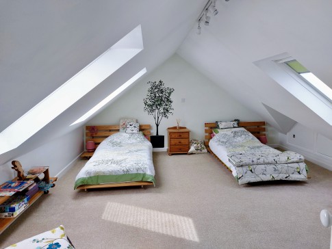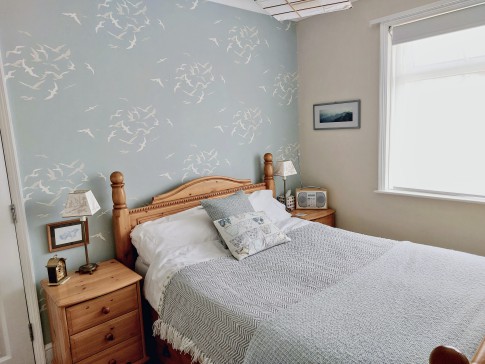 Inside, the house has 2 double bedrooms and a loft room, which has 2 single beds & a small childs’ bed. There is another small single room which I use as an office on the same floor as the double bedrooms.