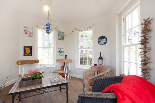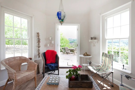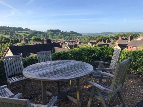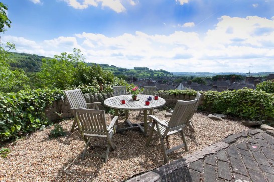 We have a fully secure front and back garden with plenty of seating areas, including a terrace with fantastic views of the town and countryside. There is also a summerhouse with lovely views, as pictured.