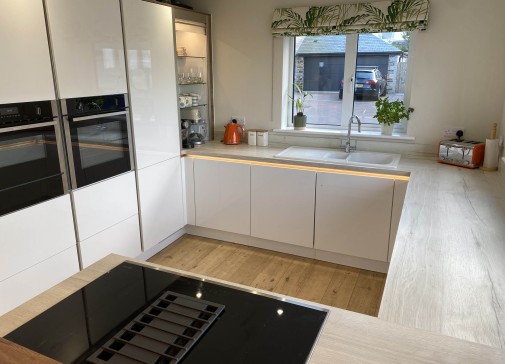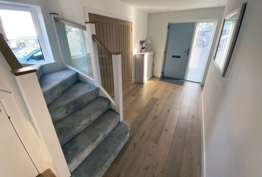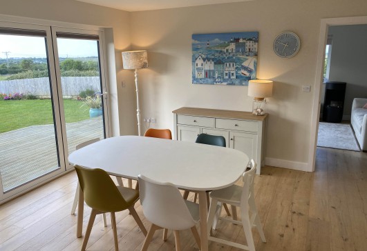 The property comprises of a large modern kitchen diner with bifold doors opening up onto the decking area. The dining table seats 6 with 2 additional spaces on the breakfast bar. The kitchen has a full height fridge, freezer, Neff oven and induction hob.