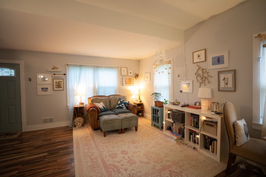 Charming two bedroom, one bath home in North Minneapolis, Minnesota. Newly renovated kitchen and bathroom. Queen bed in one room, full bed in the other. Perfect for someone with business in the area who wants a small, comfortable, charming place to stay in lieu of an Airbnb. Uncovered parking pad in back, along with pines and a willow tree and hammock. Little work station nook and lots of local art on display. Big open kitchen and living room; bedrooms are on the smaller side. Washer and dryer, Wifi, central AC and heating. Not suitable or outfitted for young children or pets, apologies! No smoking of any variety permitted inside the property.
