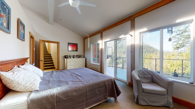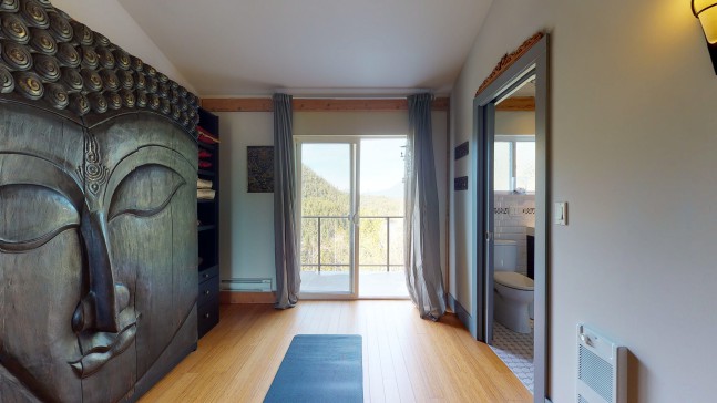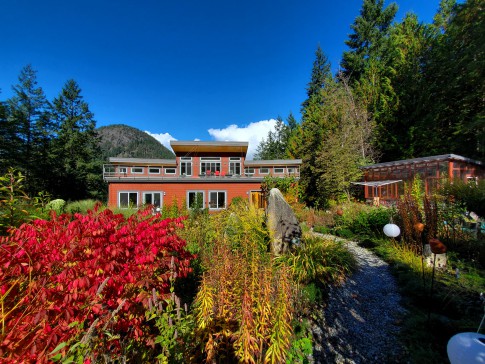 Bright airy modern open plan home and gardens in 4 acres of forest and offers total privacy. Mountain and water views, trail to ocean. Guest bedrooms share ensuite and balcony. Master has large ensuite with tub and walk in shower. Sunroom on top floor has wet bar with dishwasher and opens to large roof patio. Sleep, with windows wide open - you will hear nothing but the occasional coyote!