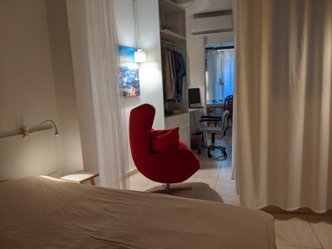 The layout of the flat means it is most suitable for a couple or someone traveling solo. In summary (details below in brackets for the detailed-minded), it's worth noting that the bedroom - though with not much natural light - is quiet to sleep in if there are many people out in the street (for example at the weekends!). And the layout means you have to walk through the main bedroom to get to the living room from the front door.
