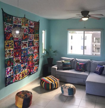 Two bedroom condo in a gated community with a swimming pool close to nature, as well as restaurants, cafes, and markets. My colorful and creative condo will transport you to tropical paradise and is filled with treasures from around the world.