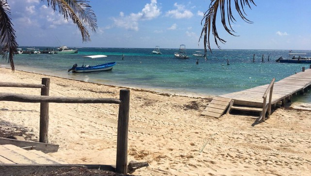 Puerto Morelos is a small fishing and beach town located between the larger vacation destinations of Cancun and Playa del Carmen. The beautiful Caribbean beach is also a national reef park with the large coral reef just off the coast famous for its snorkeling and swimming. There are also many cenotes, or freshwater swimming holes or caves to explore in the area.