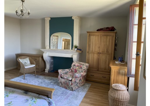 Detached Farmhouse (1848) in the country surrounded by walnut orchard. Large rooms, two with ensuite shower. Large pool with sheltered terrace, BBQ. House in good condition.