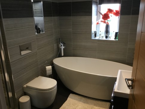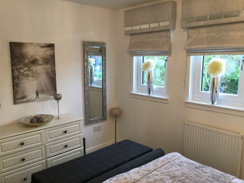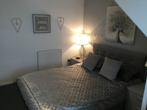 There are two double bedrooms with a bathroom between them. The bathroom has a lovely modern bath and separate shower.