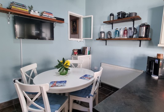 Well equipped kitchen with double oven Rangemaster, washing machine and dryer, dishwasher, microwave and air fryer.