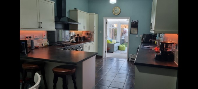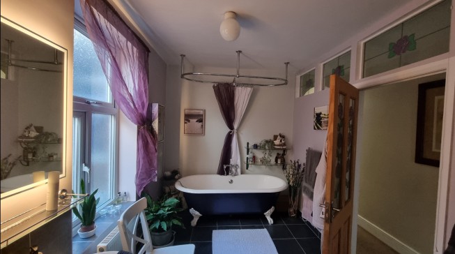 4 bedroom house over three floors with large lounge, kitchen diner and garden room.  Bathroom on 1st floor with bath and separate shower, bathroom on 2nd floor with walk in shower.