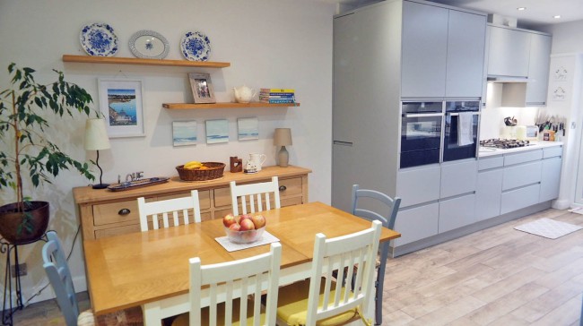 There is a large lounge that looks out over the garden. There are eating spaces in the kitchen and in the separate dining room.
