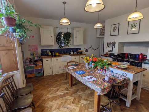 The house has a large modern kitchen, a dining room, lounge and a small, cozy snug. There is a large bathroom and an additional shower room, both installed in the last few years. The house has two large bedrooms with super king size beds in each and three smaller children's rooms with singles. The snug has a double sofa bed, if you did want more sleeping space. The scullery and larder, combined with the two staircases and working internal servants buzzers (1950s) make it quite a unique and interesting house that we really enjoy living in.
