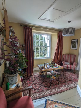 We live in a five bedroom Georgian thatched house that is grade 2 listed for its original windows and interior woodwork. It is packed full of character with lots of space for a bustling family. It's equally at home being a tranquil space where you can enjoy a good book relaxing by a window looking out over the Devon hills.