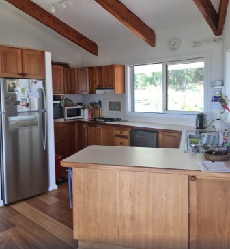 Bright Glade`s kitchen is equipped with a gas hob and an electric oven, a double sink, a dishwasher, a large refrigerator with a freezer, a microwave oven, a toaster and a kettle and a full array of crockery, cutlery and cooking and serving utensils. There is a bean grinding coffee machine or you can make plunger coffee.